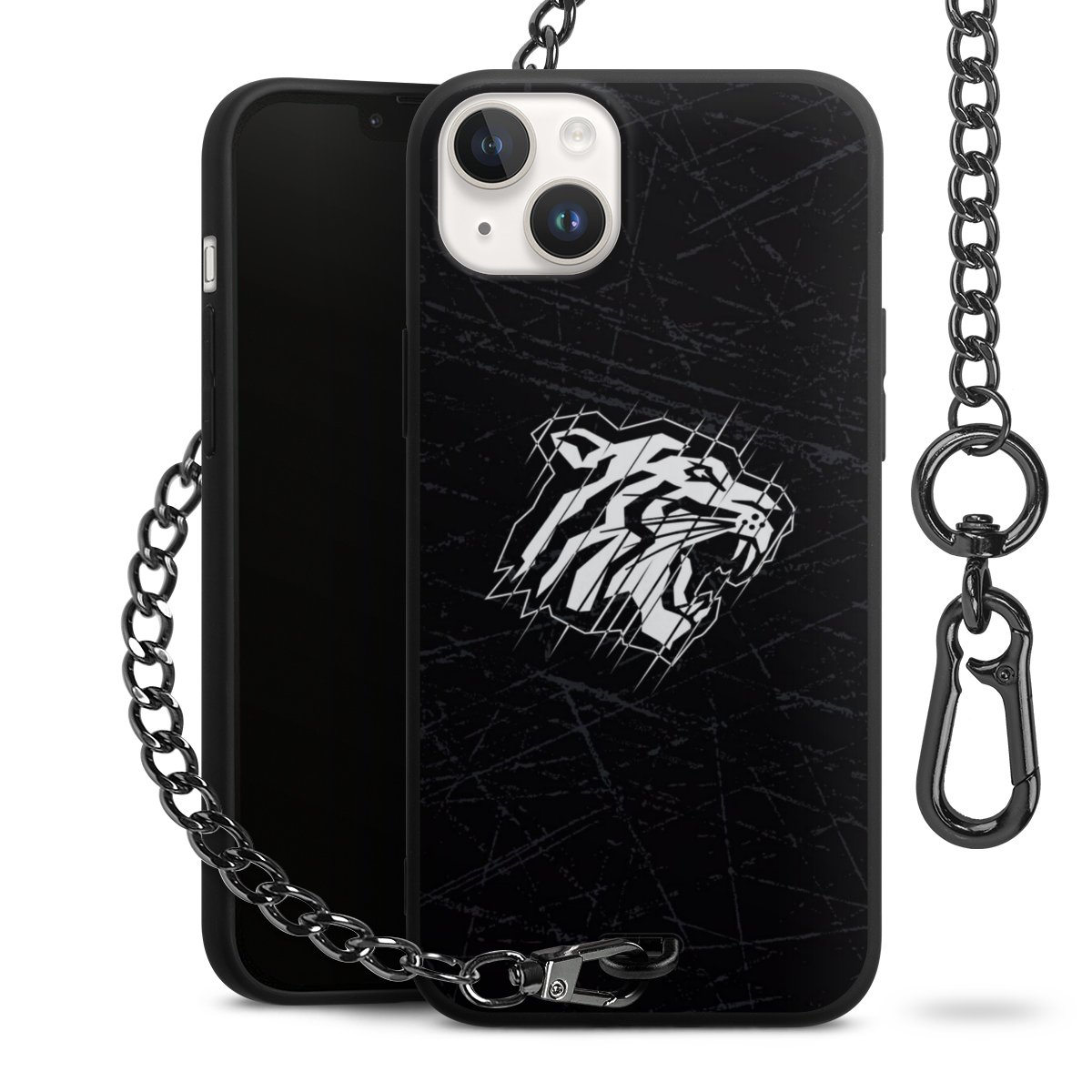 Die mattschwarze Silikon-Handyhülle besteht aus robustem TPU (thermoplastisches Polyurethan). Sie ist flexibel und schützt Dein Smartphone vor Stößen und Kratzern. Die Kette sowie der Karabinerhaken sind aus Metall in Gunmetal-Optik gefertigt. Für dieses Produkt kommen ausschließlich TÜV-geprüfte Materialien zum Einsatz.