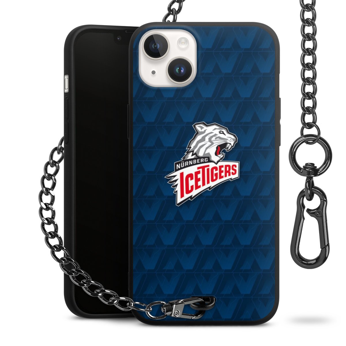 - Mattschwarze Handyhülle mit Metallkette