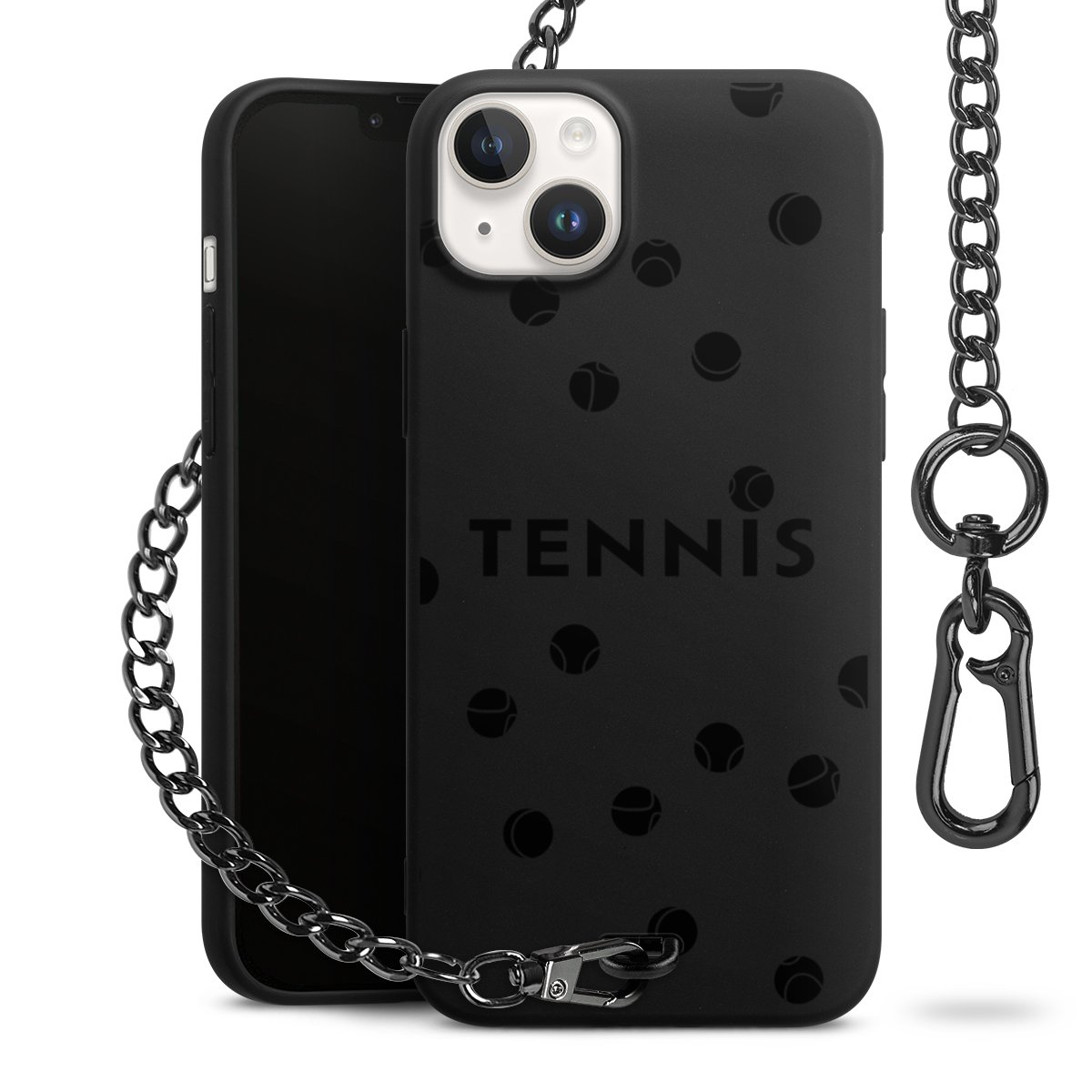 • Mattschwarze Handyhülle mit Metallkette