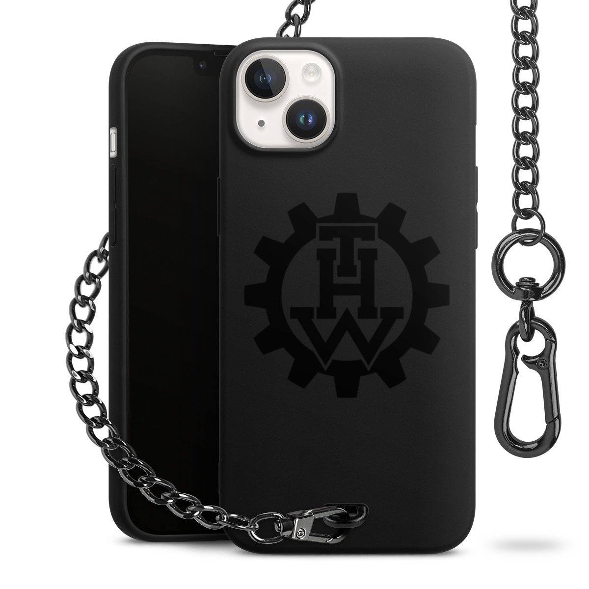 • Mattschwarze Handyhülle mit Metallkette