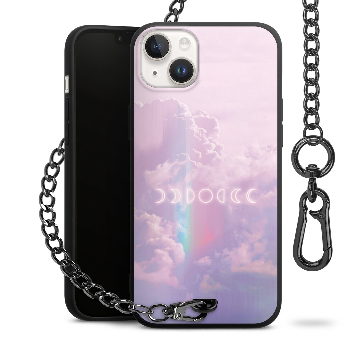 • Mattschwarze Handyhülle mit Metallkette