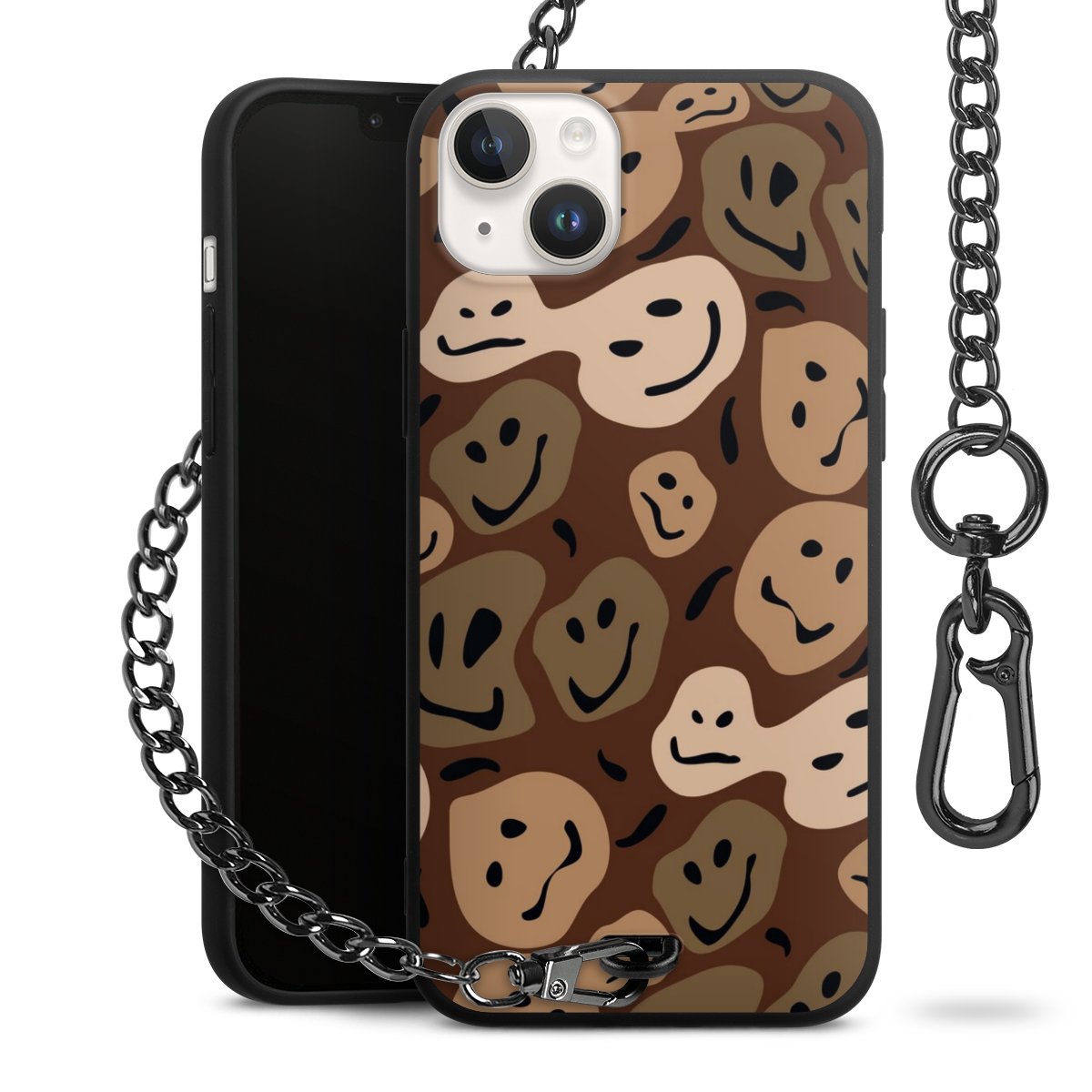 - Mattschwarze Handyhülle mit Metallkette