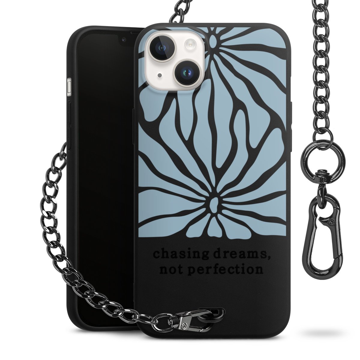 • Mattschwarze Handyhülle mit Metallkette