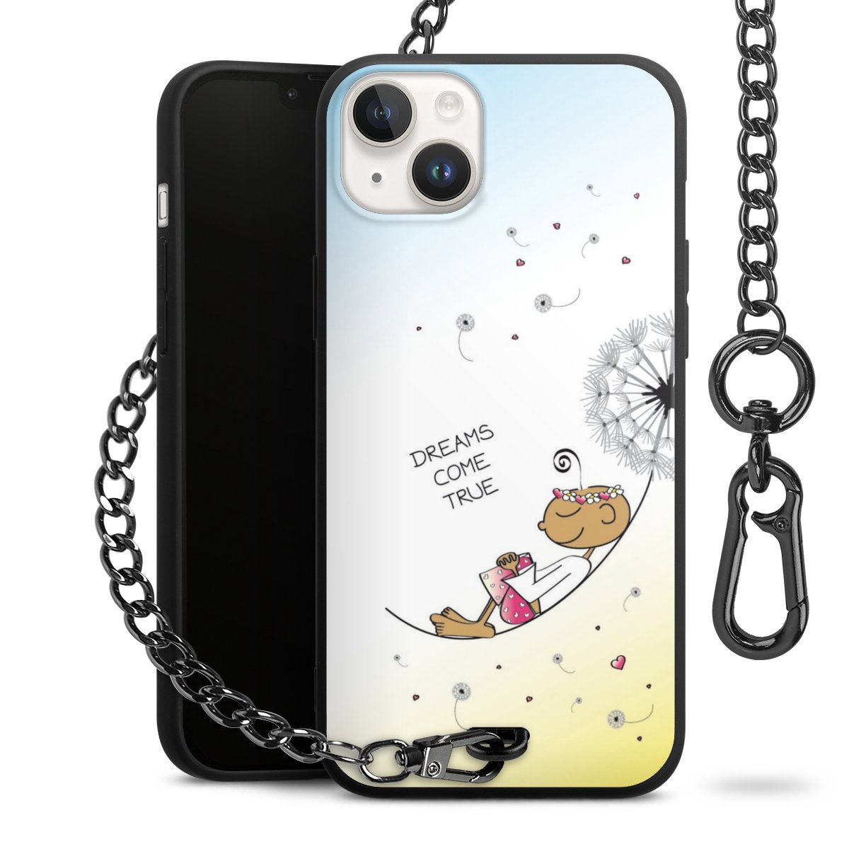 • Mattschwarze Handyhülle mit Metallkette