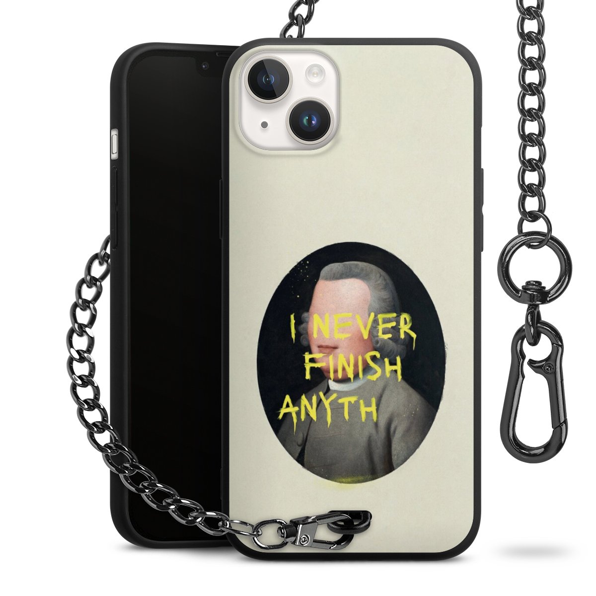 • Mattschwarze Handyhülle mit Metallkette