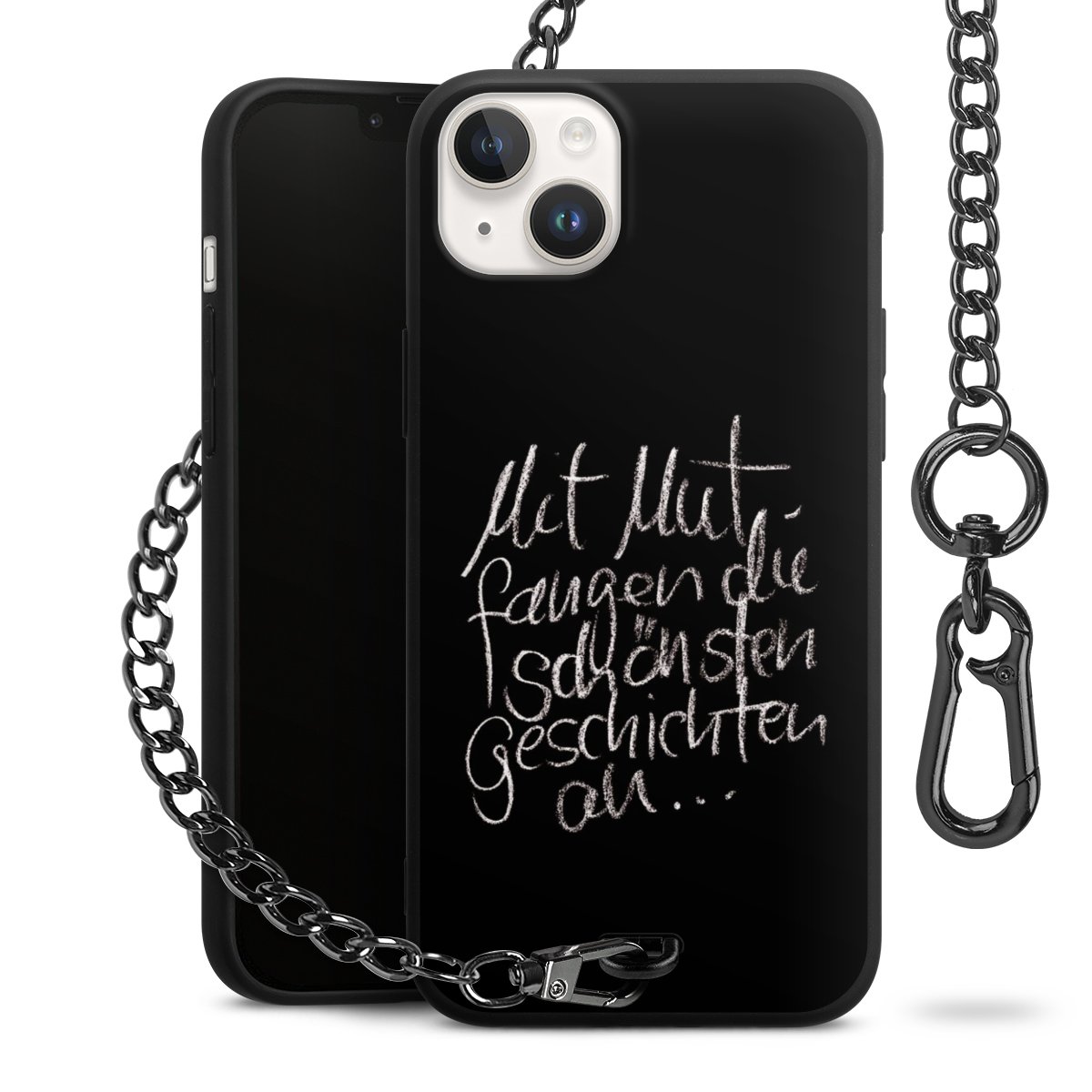 • Mattschwarze Handyhülle mit Metallkette
