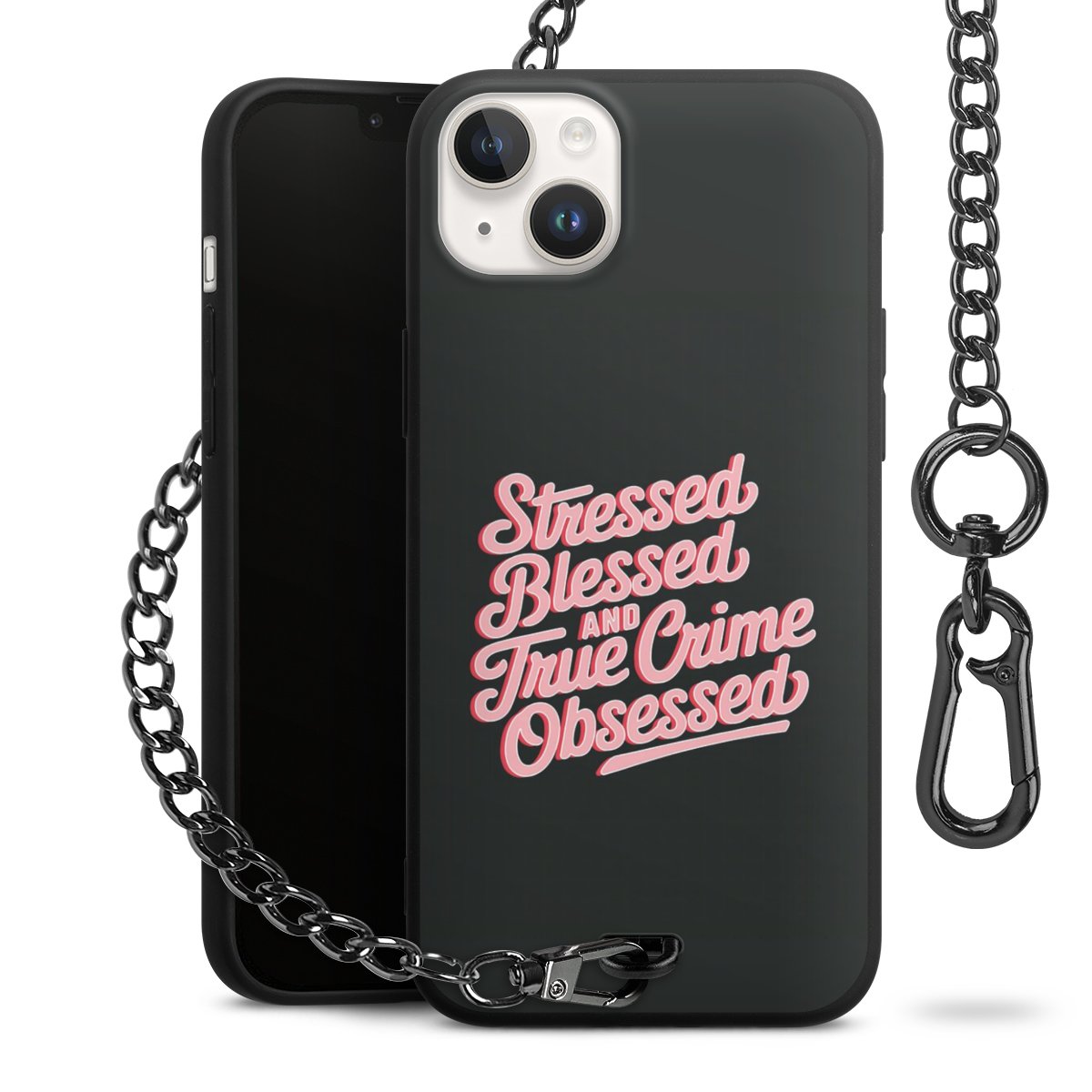 Die mattschwarze Silikon-Handyhülle besteht aus robustem TPU (thermoplastisches Polyurethan). Sie ist flexibel und schützt Dein Smartphone vor Stößen und Kratzern. Die Kette sowie der Karabinerhaken sind aus Metall in Gunmetal-Optik gefertigt. Für dieses Produkt kommen ausschließlich TÜV-geprüfte Materialien zum Einsatz.