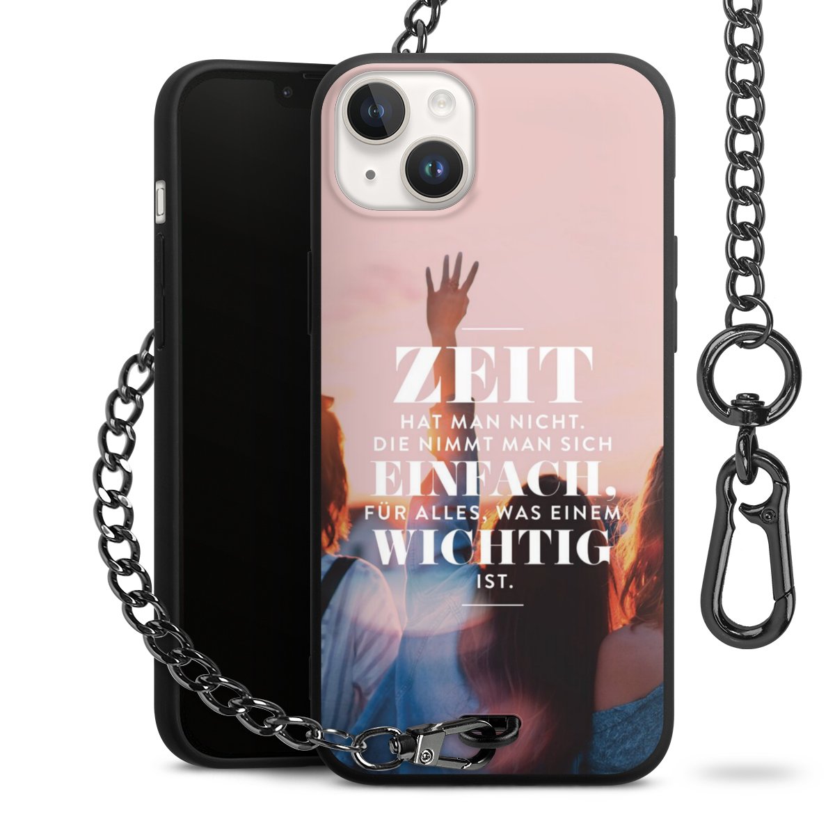 Die mattschwarze Silikon-Handyhülle besteht aus robustem TPU (thermoplastisches Polyurethan). Sie ist flexibel und schützt Dein Smartphone vor Stößen und Kratzern. Die Kette sowie der Karabinerhaken sind aus Metall in Gunmetal-Optik gefertigt. Für dieses Produkt kommen ausschließlich TÜV-geprüfte Materialien zum Einsatz.