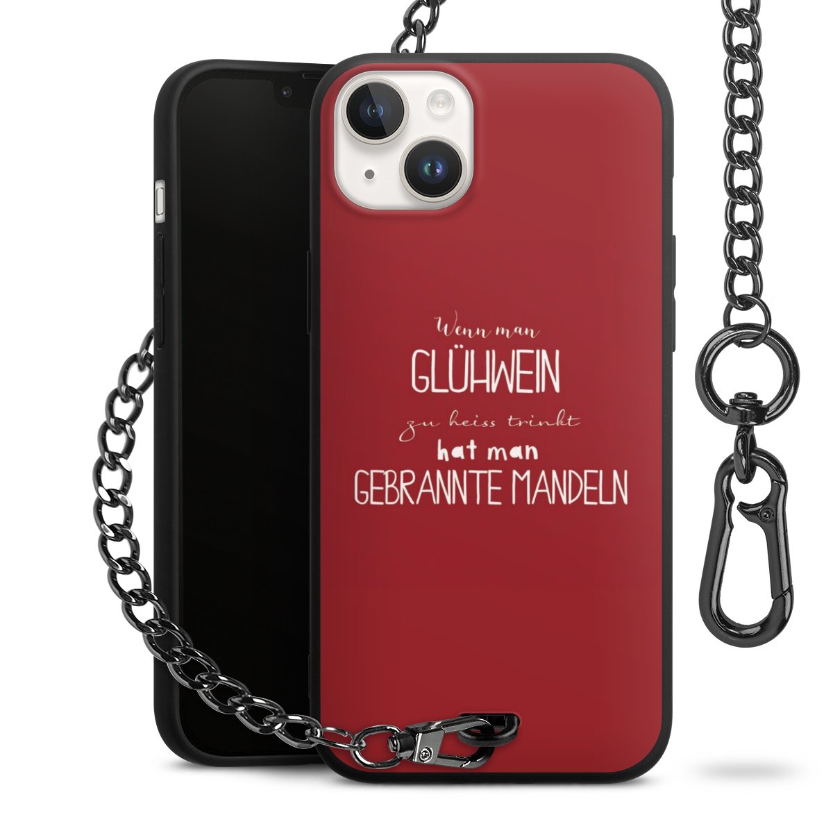 Die mattschwarze Silikon-Handyhülle besteht aus robustem TPU (thermoplastisches Polyurethan). Sie ist flexibel und schützt Dein Smartphone vor Stößen und Kratzern. Die Kette sowie der Karabinerhaken sind aus Metall in Gunmetal-Optik gefertigt. Für dieses Produkt kommen ausschließlich TÜV-geprüfte Materialien zum Einsatz.