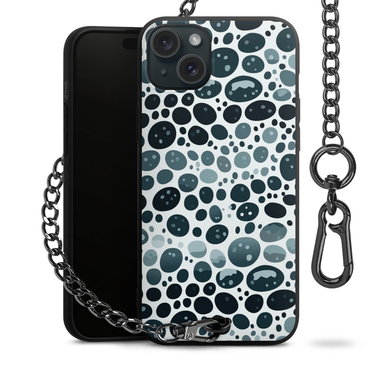 Die mattschwarze Silikon-Handyhülle besteht aus robustem TPU (thermoplastisches Polyurethan). Sie ist flexibel und schützt Dein Smartphone vor Stößen und Kratzern. Die Kette sowie der Karabinerhaken sind aus Metall in Gunmetal-Optik gefertigt. Für dieses Produkt kommen ausschließlich TÜV-geprüfte Materialien zum Einsatz.