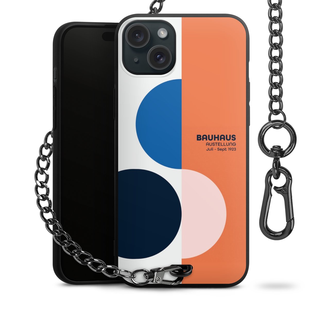• Mattschwarze Handyhülle mit Metallkette