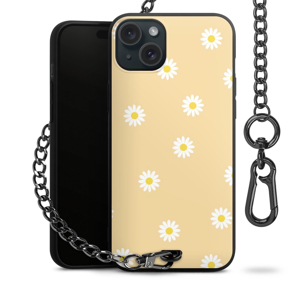 - Mattschwarze Handyhülle mit Metallkette