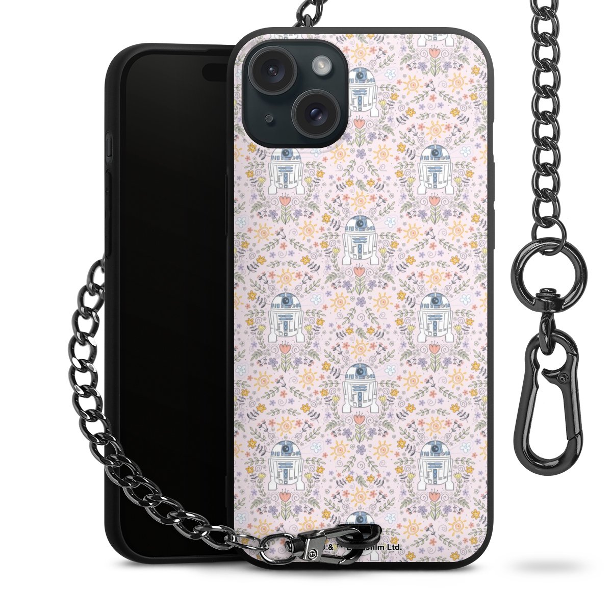 • Mattschwarze Handyhülle mit Metallkette