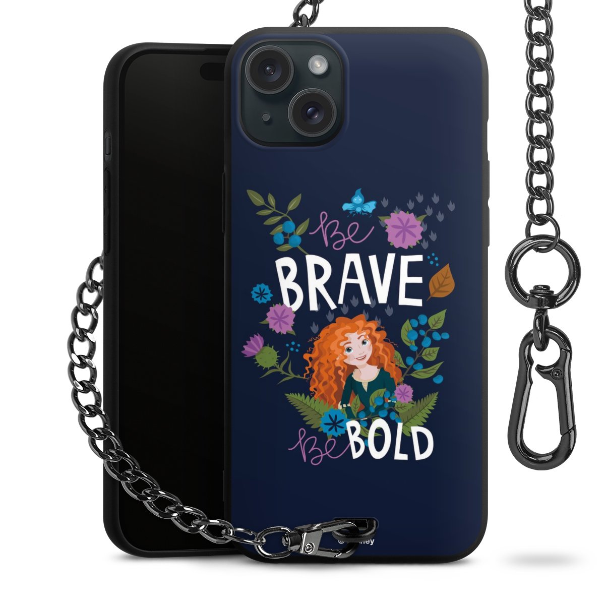 - Mattschwarze Handyhülle mit Metallkette