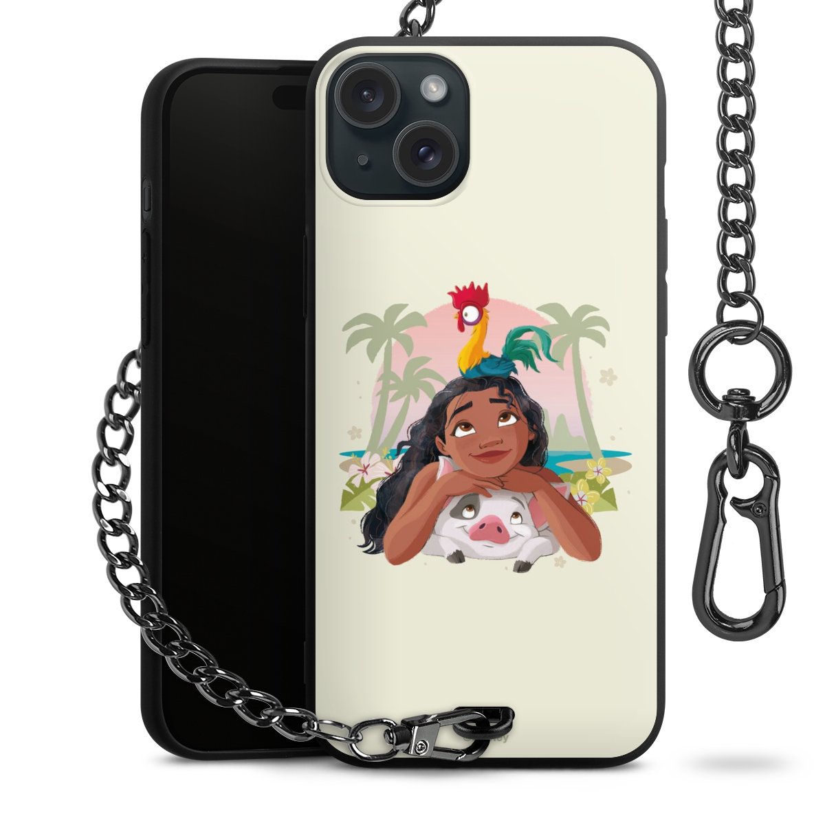 - Mattschwarze Handyhülle mit Metallkette