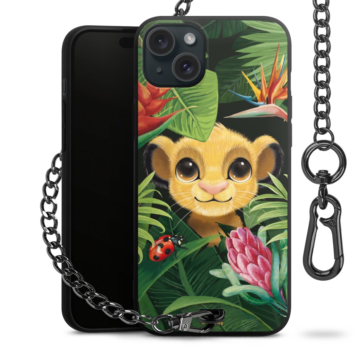 Die Handyhülle verfügt über eine mittig am unteren Rand platzierte Öse, an der die Metallkette stabil befestigt ist. Bestelle die Hülle einfach für Dein Smartphone-Modell, dann passt sie wie angegossen und Du brauchst sie bloß einmal anzudrücken. Handy in die Tasche, Karabiner an den Hosenbund – schon kann die Party starten.
