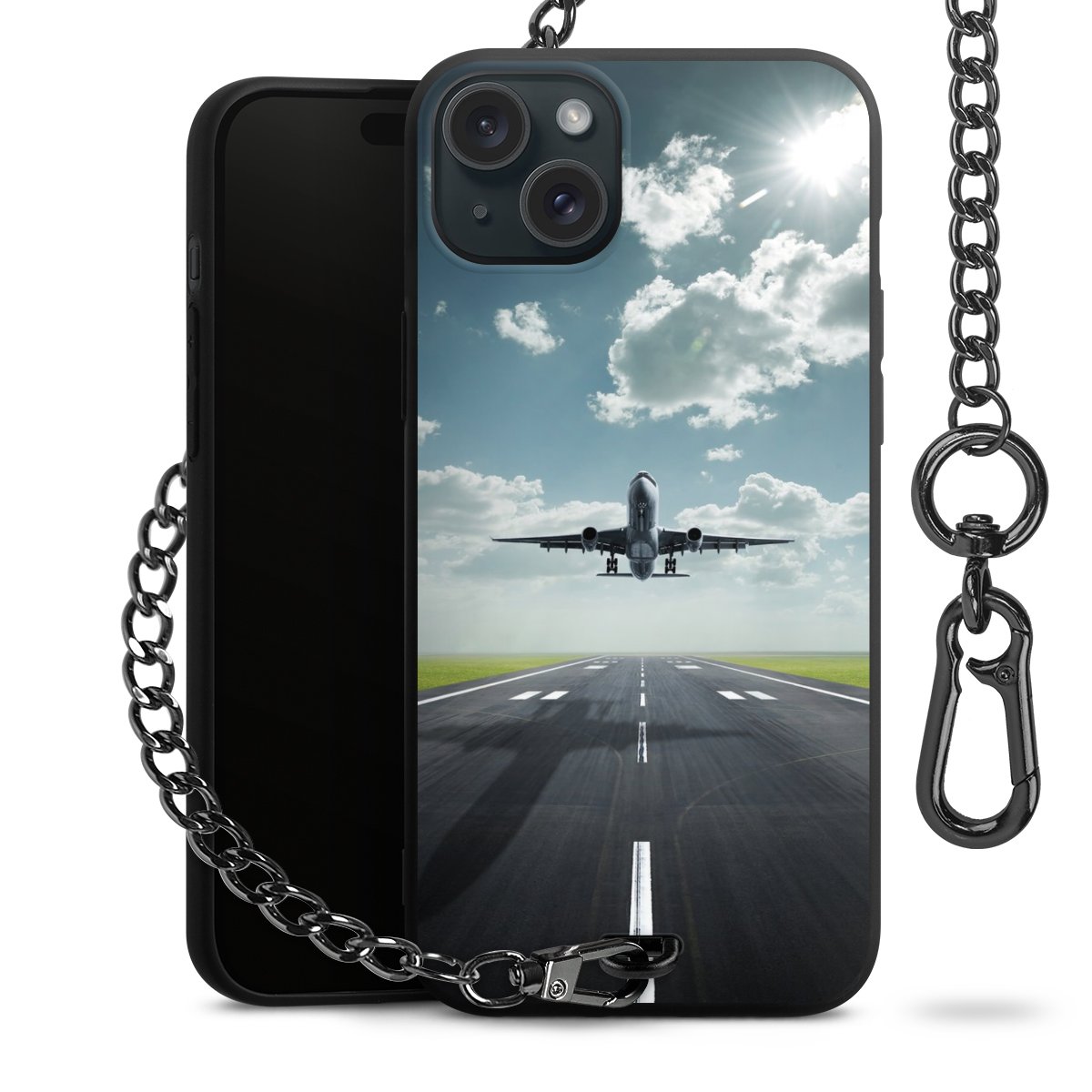 • Mattschwarze Handyhülle mit Metallkette