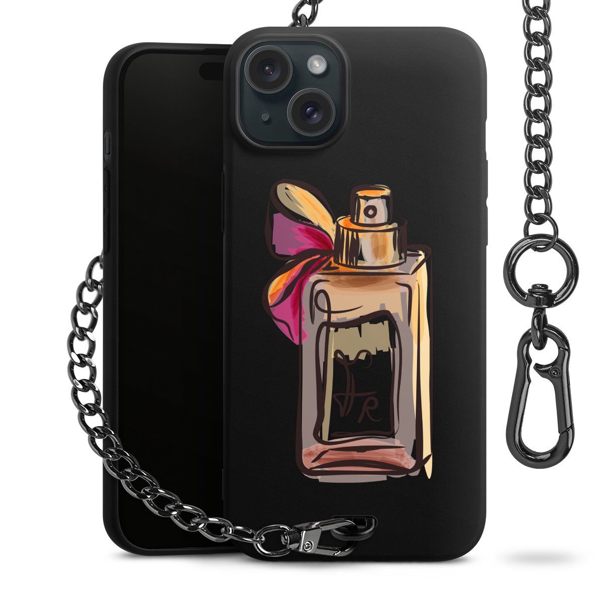 - Mattschwarze Handyhülle mit Metallkette