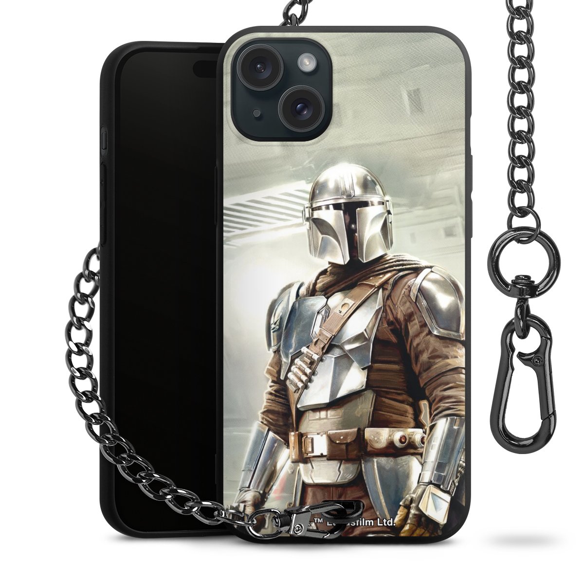 Die mattschwarze Silikon-Handyhülle besteht aus robustem TPU (thermoplastisches Polyurethan). Sie ist flexibel und schützt Dein Smartphone vor Stößen und Kratzern. Die Kette sowie der Karabinerhaken sind aus Metall in Gunmetal-Optik gefertigt. Für dieses Produkt kommen ausschließlich TÜV-geprüfte Materialien zum Einsatz.