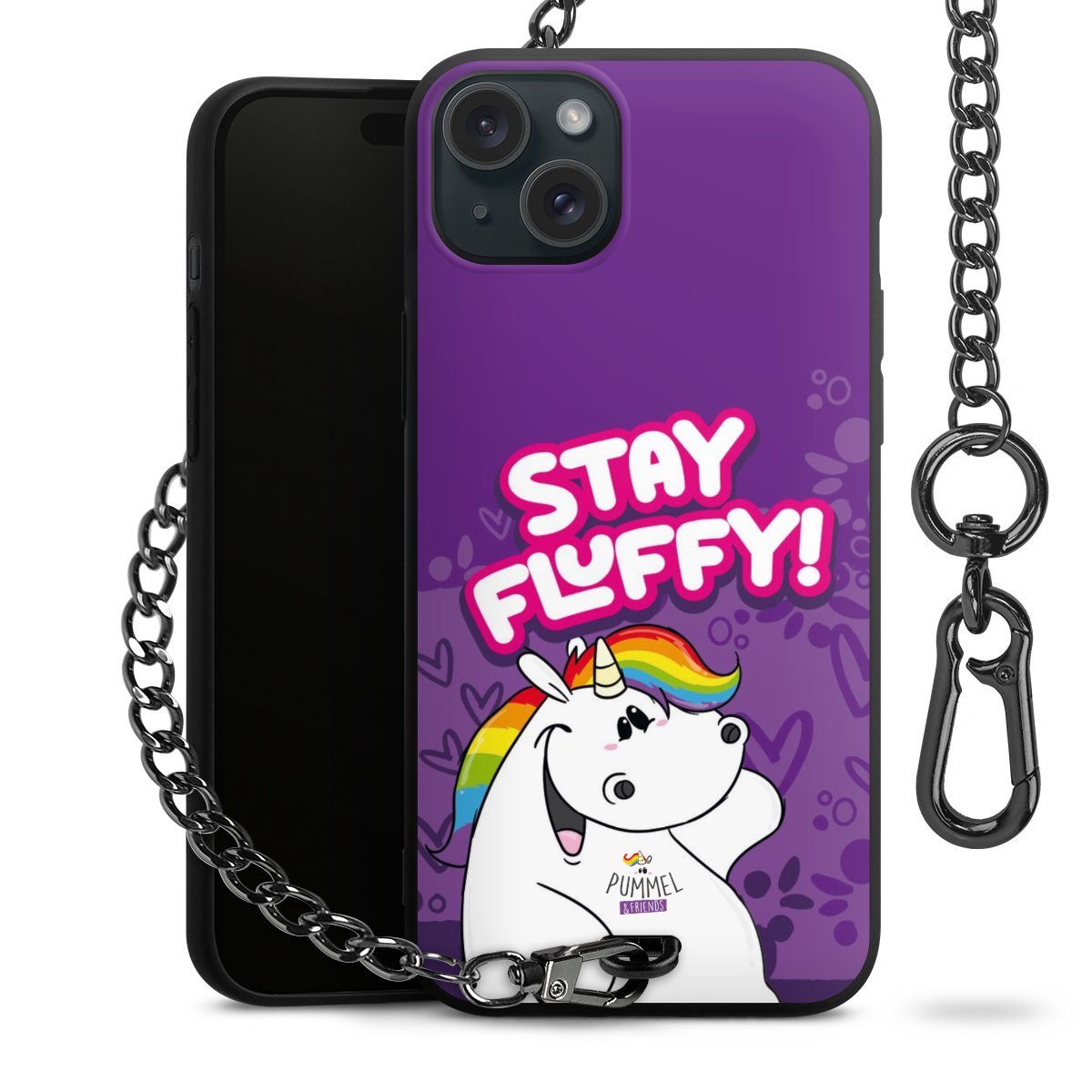 Die mattschwarze Silikon-Handyhülle besteht aus robustem TPU (thermoplastisches Polyurethan). Sie ist flexibel und schützt Dein Smartphone vor Stößen und Kratzern. Die Kette sowie der Karabinerhaken sind aus Metall in Gunmetal-Optik gefertigt. Für dieses Produkt kommen ausschließlich TÜV-geprüfte Materialien zum Einsatz.