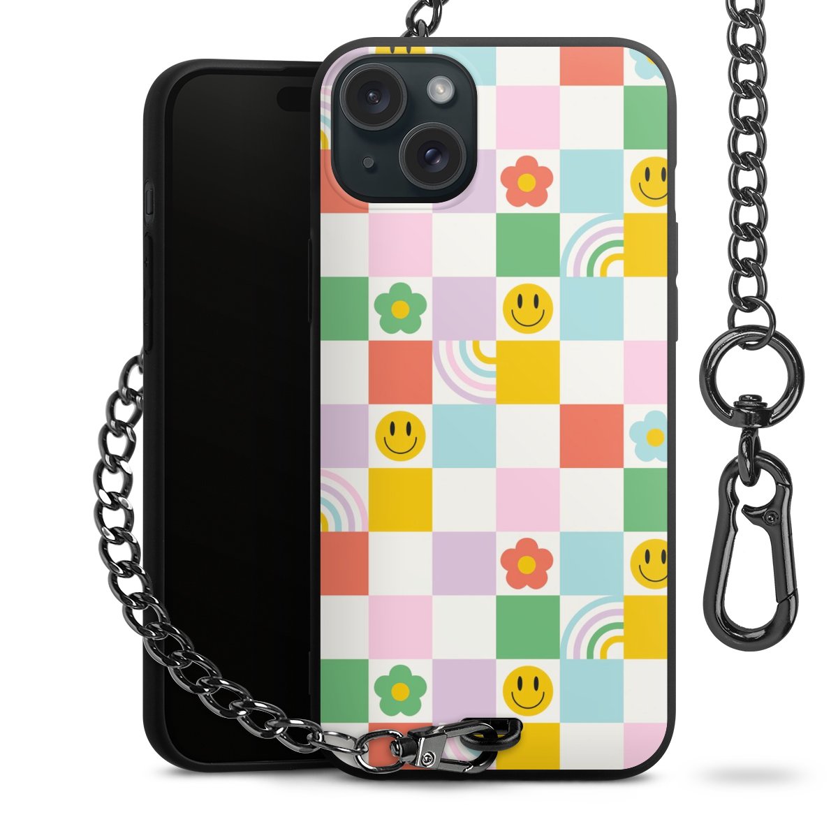 Die mattschwarze Silikon-Handyhülle besteht aus robustem TPU (thermoplastisches Polyurethan). Sie ist flexibel und schützt Dein Smartphone vor Stößen und Kratzern. Die Kette sowie der Karabinerhaken sind aus Metall in Gunmetal-Optik gefertigt. Für dieses Produkt kommen ausschließlich TÜV-geprüfte Materialien zum Einsatz.