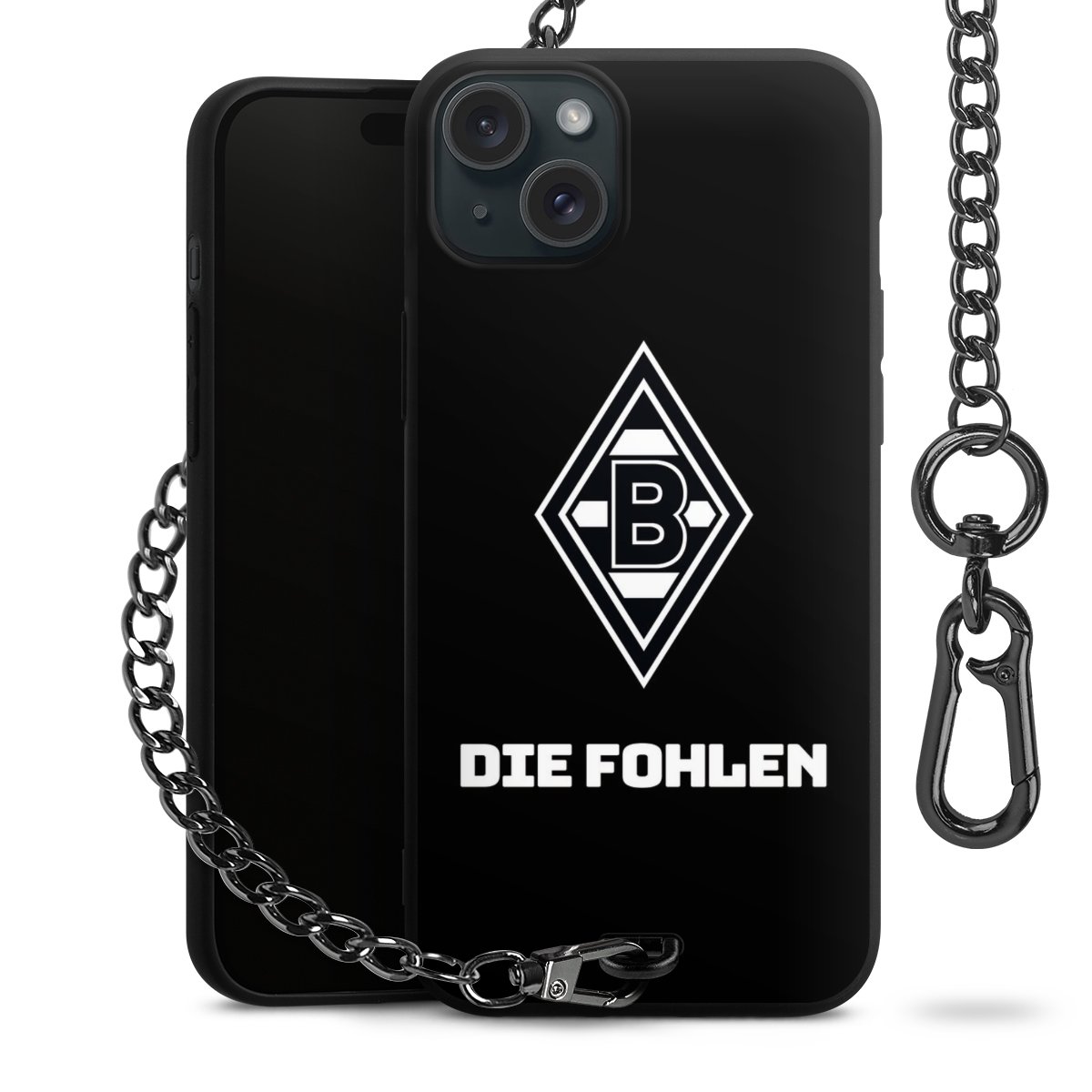 Die mattschwarze Silikon-Handyhülle besteht aus robustem TPU (thermoplastisches Polyurethan). Sie ist flexibel und schützt Dein Smartphone vor Stößen und Kratzern. Die Kette sowie der Karabinerhaken sind aus Metall in Gunmetal-Optik gefertigt. Für dieses Produkt kommen ausschließlich TÜV-geprüfte Materialien zum Einsatz.