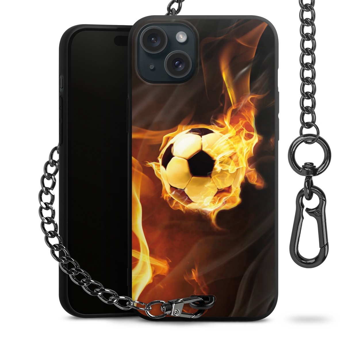 • Mattschwarze Handyhülle mit Metallkette