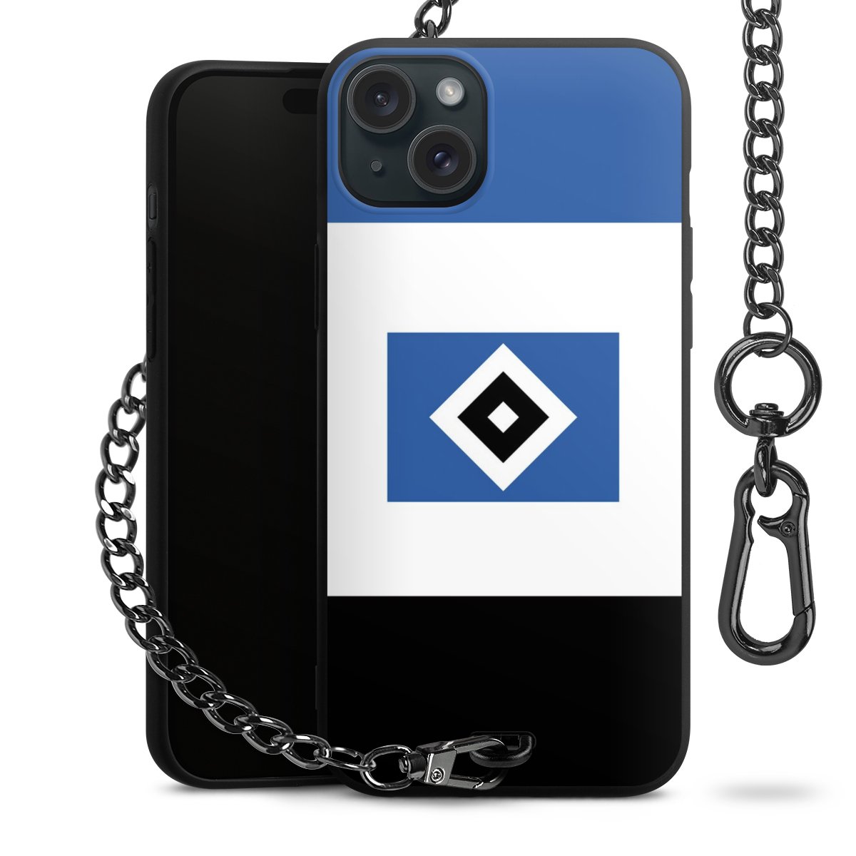 Die mattschwarze Silikon-Handyhülle besteht aus robustem TPU (thermoplastisches Polyurethan). Sie ist flexibel und schützt Dein Smartphone vor Stößen und Kratzern. Die Kette sowie der Karabinerhaken sind aus Metall in Gunmetal-Optik gefertigt. Für dieses Produkt kommen ausschließlich TÜV-geprüfte Materialien zum Einsatz.