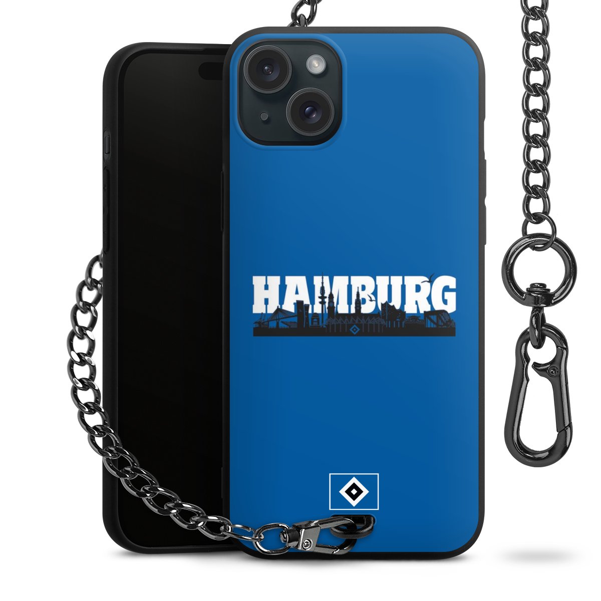 Die mattschwarze Silikon-Handyhülle besteht aus robustem TPU (thermoplastisches Polyurethan). Sie ist flexibel und schützt Dein Smartphone vor Stößen und Kratzern. Die Kette sowie der Karabinerhaken sind aus Metall in Gunmetal-Optik gefertigt. Für dieses Produkt kommen ausschließlich TÜV-geprüfte Materialien zum Einsatz.