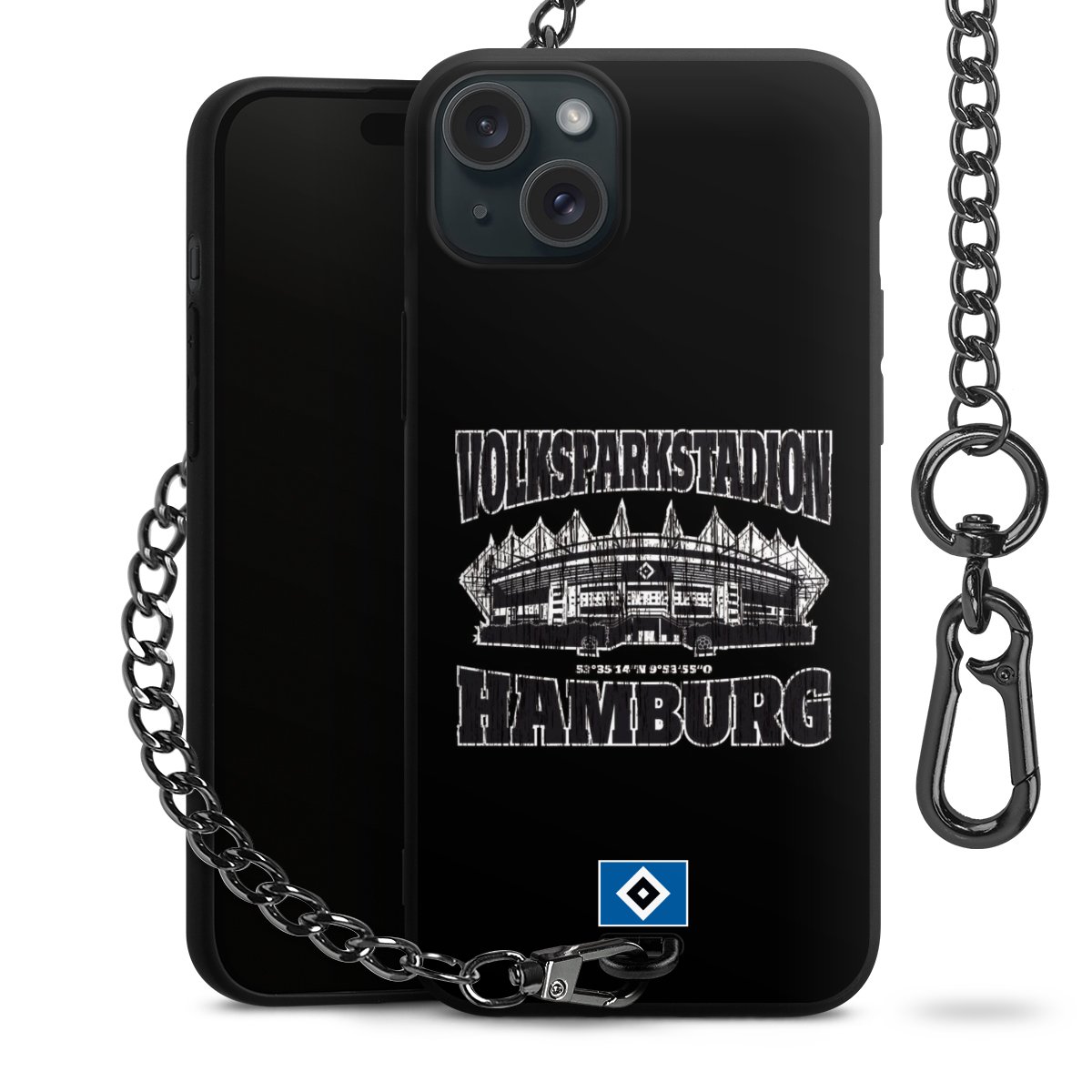 Die mattschwarze Silikon-Handyhülle besteht aus robustem TPU (thermoplastisches Polyurethan). Sie ist flexibel und schützt Dein Smartphone vor Stößen und Kratzern. Die Kette sowie der Karabinerhaken sind aus Metall in Gunmetal-Optik gefertigt. Für dieses Produkt kommen ausschließlich TÜV-geprüfte Materialien zum Einsatz.