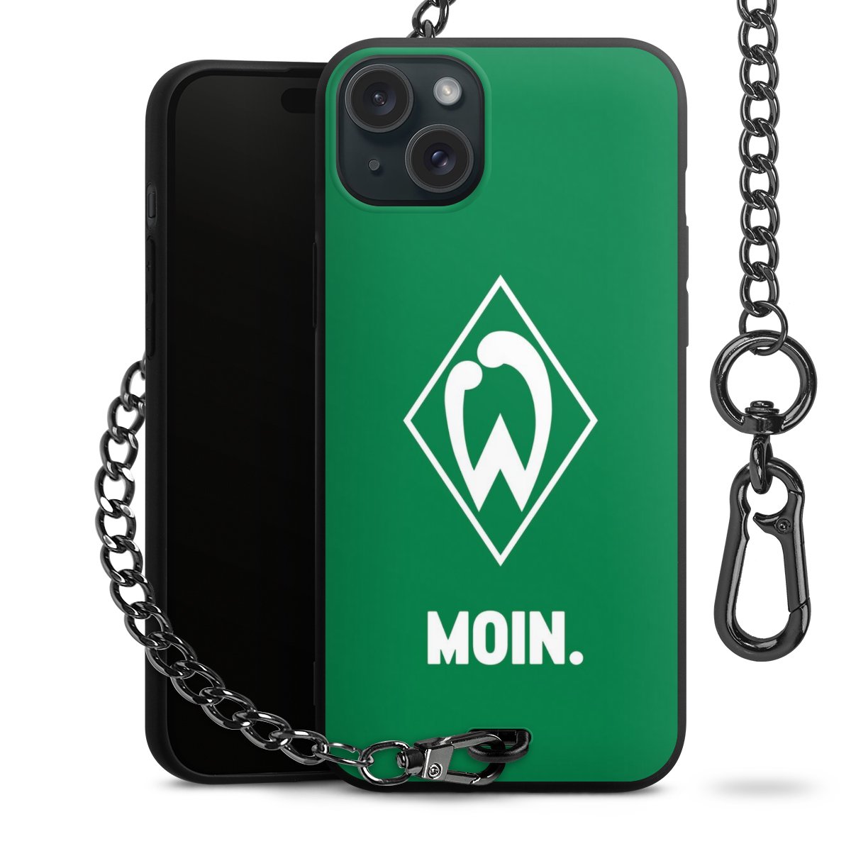 Die mattschwarze Silikon-Handyhülle besteht aus robustem TPU (thermoplastisches Polyurethan). Sie ist flexibel und schützt Dein Smartphone vor Stößen und Kratzern. Die Kette sowie der Karabinerhaken sind aus Metall in Gunmetal-Optik gefertigt. Für dieses Produkt kommen ausschließlich TÜV-geprüfte Materialien zum Einsatz.