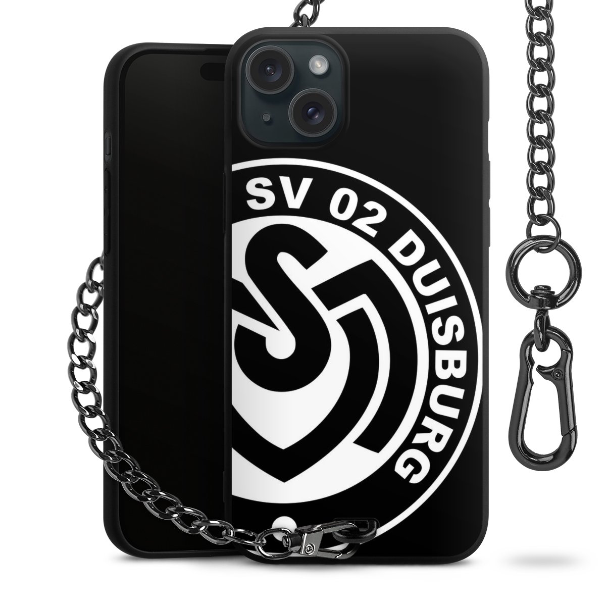 Die mattschwarze Silikon-Handyhülle besteht aus robustem TPU (thermoplastisches Polyurethan). Sie ist flexibel und schützt Dein Smartphone vor Stößen und Kratzern. Die Kette sowie der Karabinerhaken sind aus Metall in Gunmetal-Optik gefertigt. Für dieses Produkt kommen ausschließlich TÜV-geprüfte Materialien zum Einsatz.