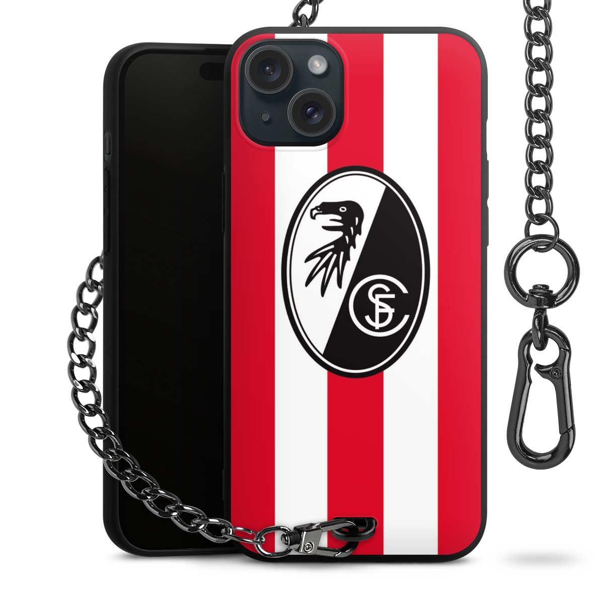 Bei DeinDesign kannst Du Dir eine individuelle SC-Freiburg-Handyhülle aussuchen, auf der das stilvolle schwarz-weiße Logo mit dem Greifenkopf zu sehen ist. Durch eine solche Hülle erhält Dein Smartphone ein unverkennbar individuelles Design. Der SC-Freiburg-Shop bietet lizensierte Fanartikel für alle Fans der Breisgau-Brasilianer.