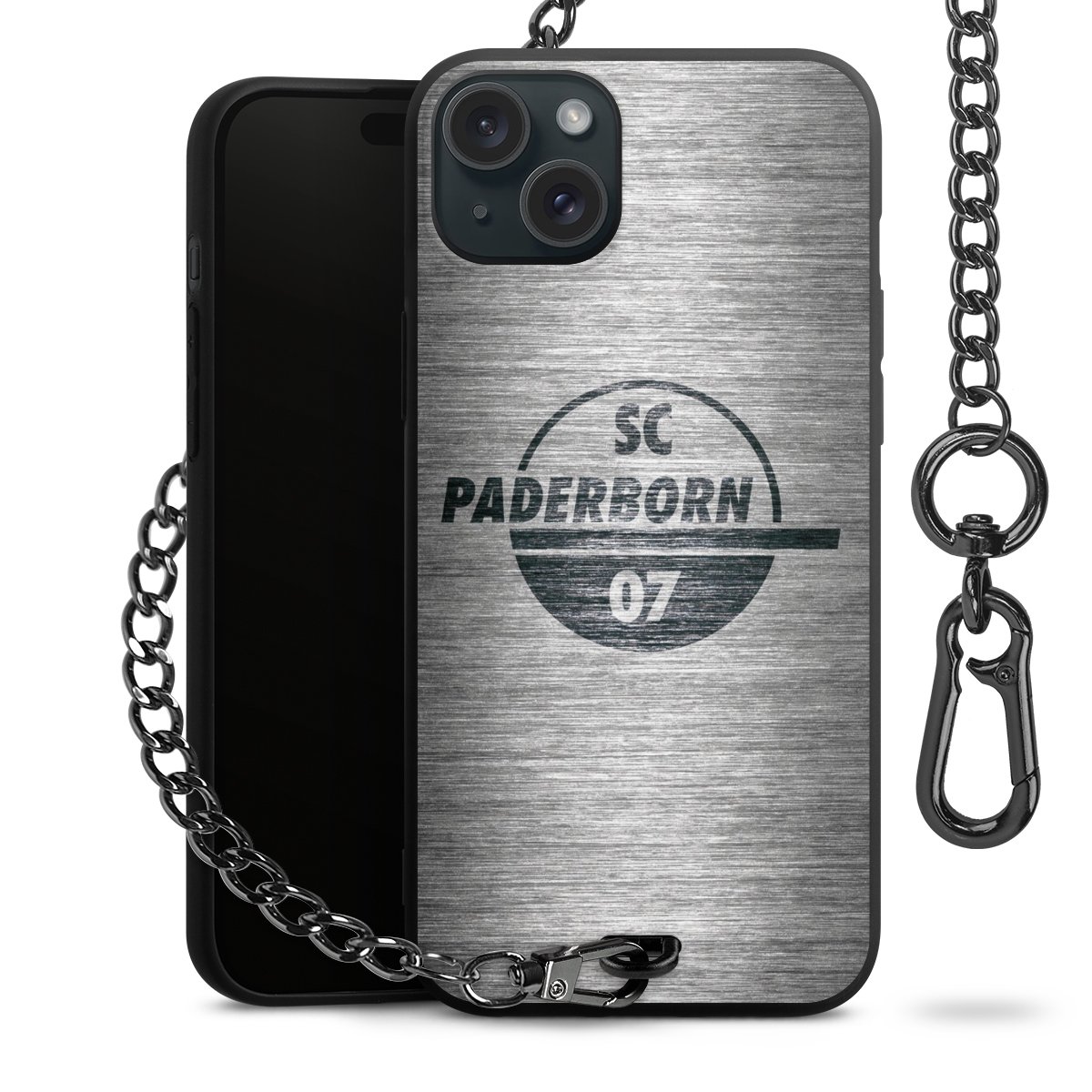 Die mattschwarze Silikon-Handyhülle besteht aus robustem TPU (thermoplastisches Polyurethan). Sie ist flexibel und schützt Dein Smartphone vor Stößen und Kratzern. Die Kette sowie der Karabinerhaken sind aus Metall in Gunmetal-Optik gefertigt. Für dieses Produkt kommen ausschließlich TÜV-geprüfte Materialien zum Einsatz.