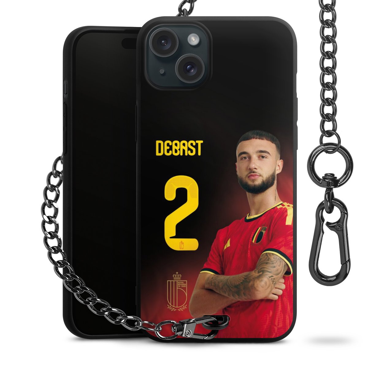 Die mattschwarze Silikon-Handyhülle besteht aus robustem TPU (thermoplastisches Polyurethan). Sie ist flexibel und schützt Dein Smartphone vor Stößen und Kratzern. Die Kette sowie der Karabinerhaken sind aus Metall in Gunmetal-Optik gefertigt. Für dieses Produkt kommen ausschließlich TÜV-geprüfte Materialien zum Einsatz.