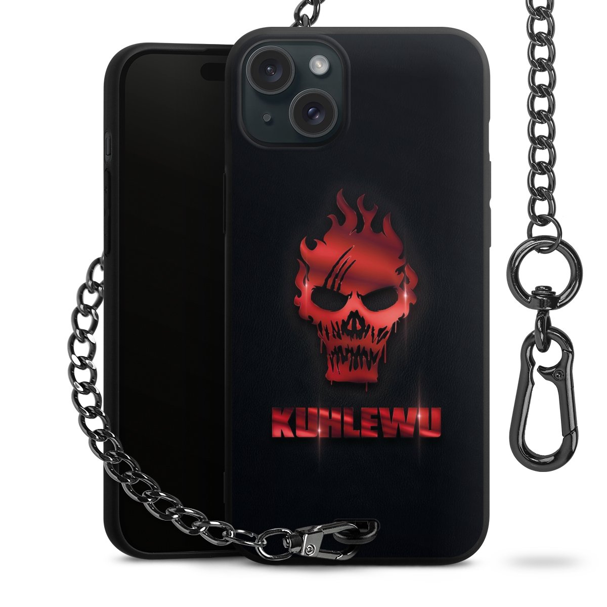 Die mattschwarze Silikon-Handyhülle besteht aus robustem TPU (thermoplastisches Polyurethan). Sie ist flexibel und schützt Dein Smartphone vor Stößen und Kratzern. Die Kette sowie der Karabinerhaken sind aus Metall in Gunmetal-Optik gefertigt. Für dieses Produkt kommen ausschließlich TÜV-geprüfte Materialien zum Einsatz.