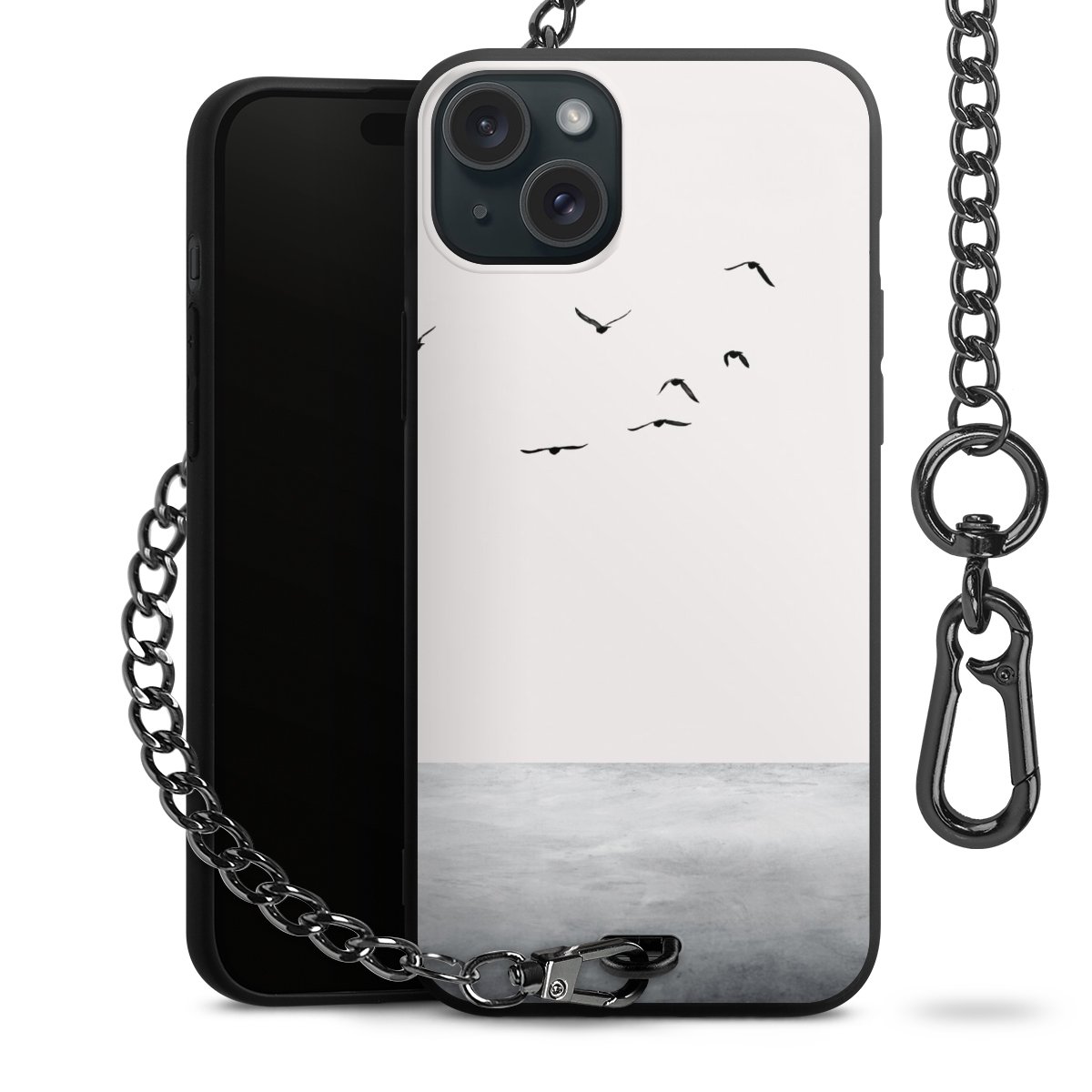 • Mattschwarze Handyhülle mit Metallkette