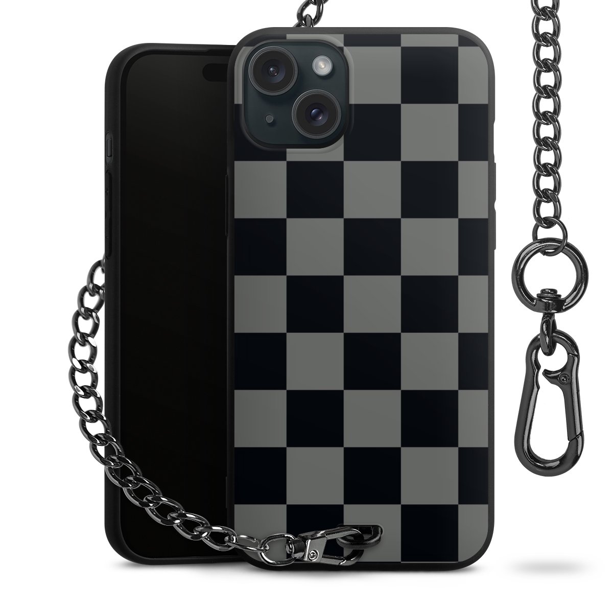 - Mattschwarze Handyhülle mit Metallkette