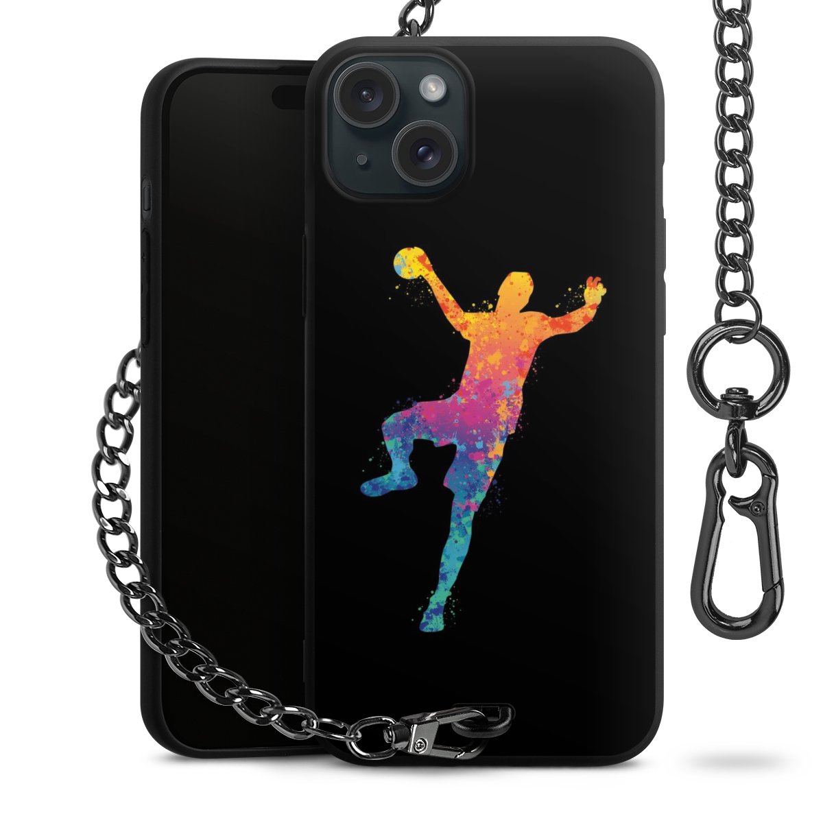 - Mattschwarze Handyhülle mit Metallkette