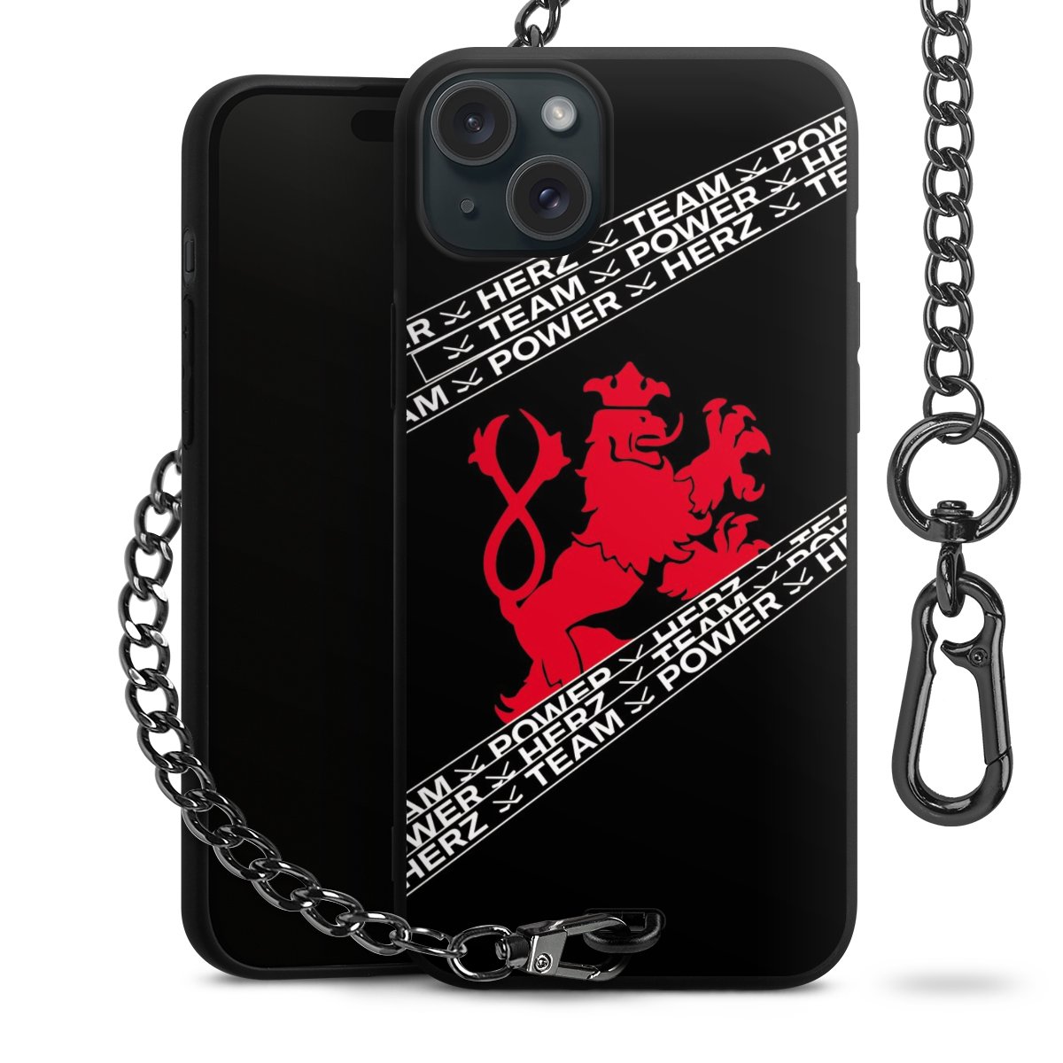 Die mattschwarze Silikon-Handyhülle besteht aus robustem TPU (thermoplastisches Polyurethan). Sie ist flexibel und schützt Dein Smartphone vor Stößen und Kratzern. Die Kette sowie der Karabinerhaken sind aus Metall in Gunmetal-Optik gefertigt. Für dieses Produkt kommen ausschließlich TÜV-geprüfte Materialien zum Einsatz.