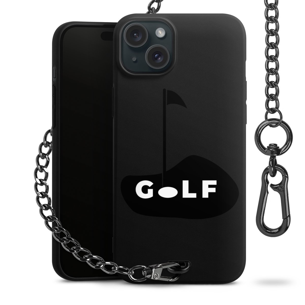 • Mattschwarze Handyhülle mit Metallkette