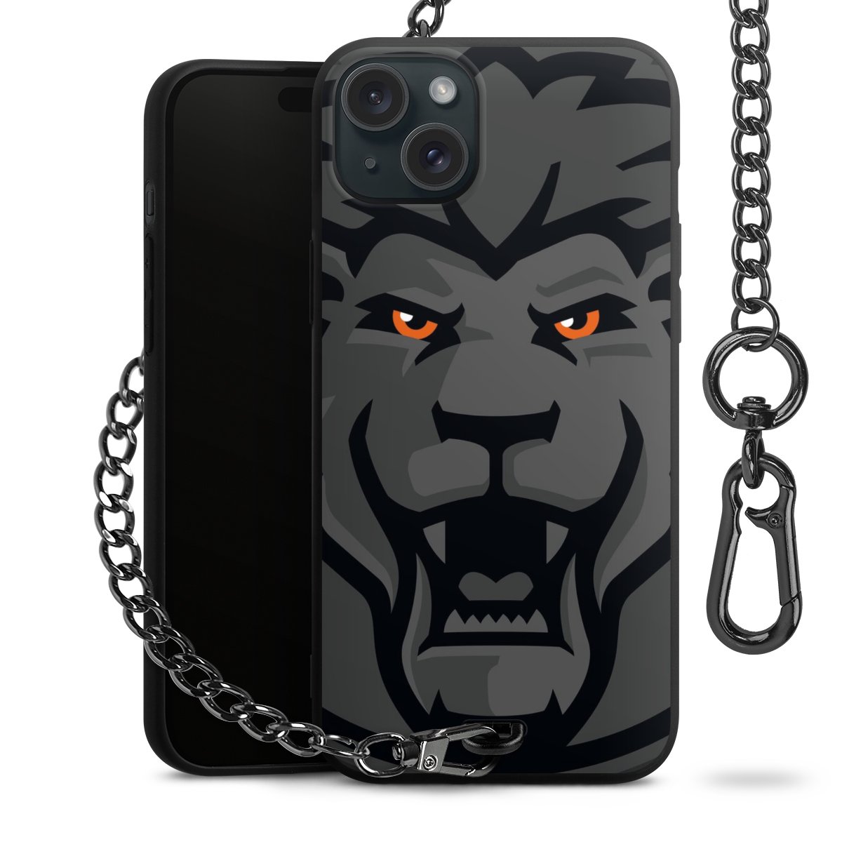 • Mattschwarze Handyhülle mit Metallkette