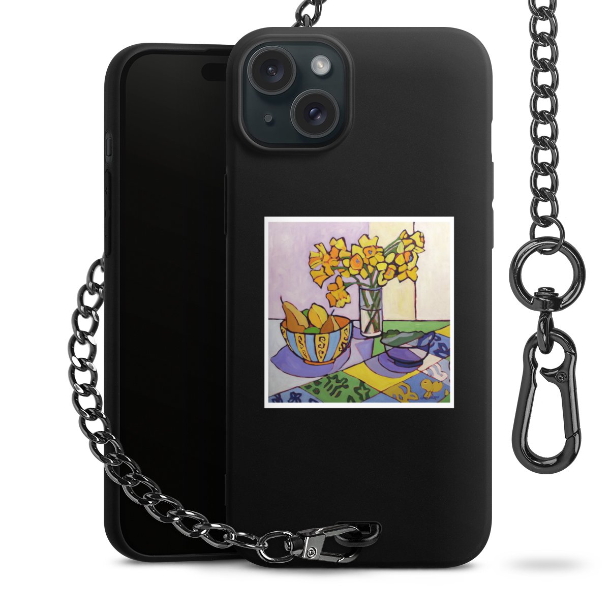 - Mattschwarze Handyhülle mit Metallkette
