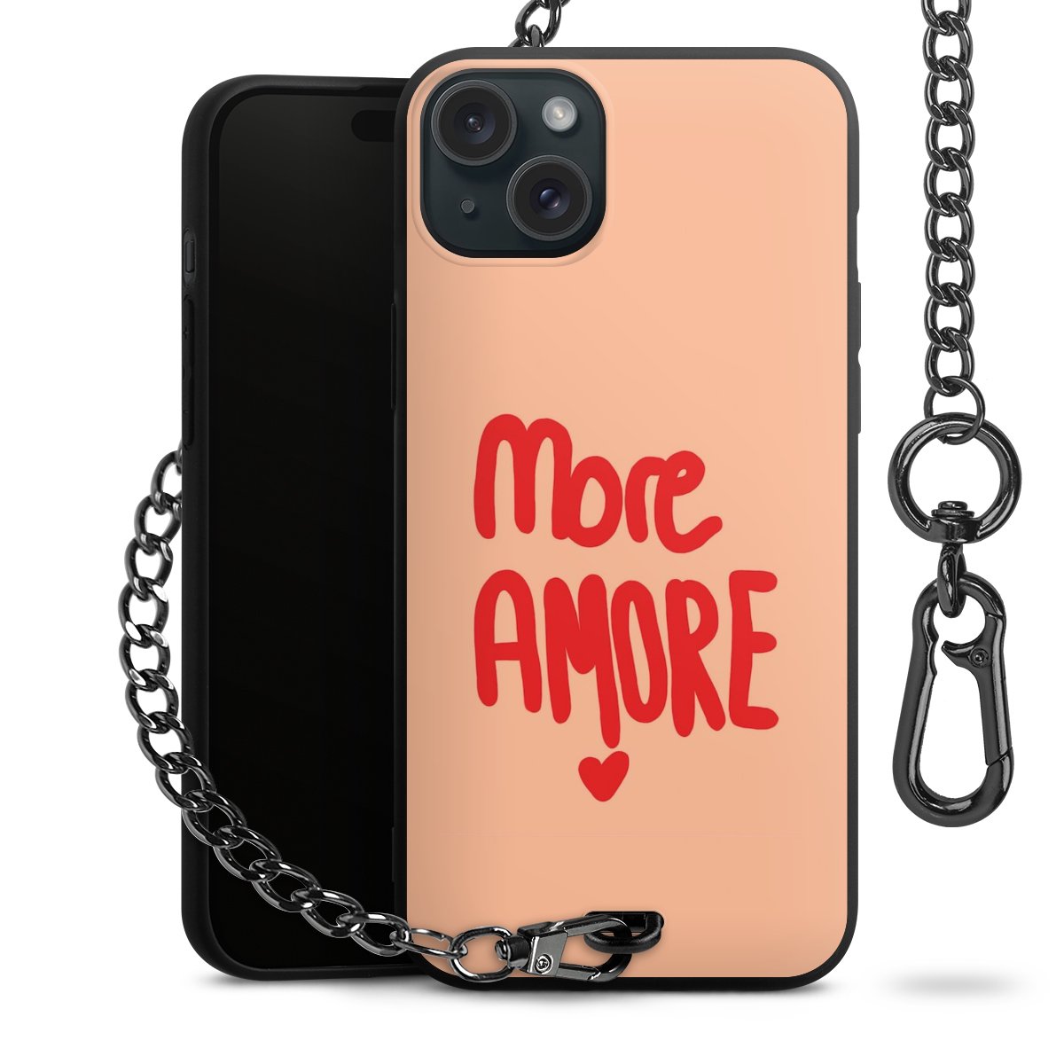 • Mattschwarze Handyhülle mit Metallkette