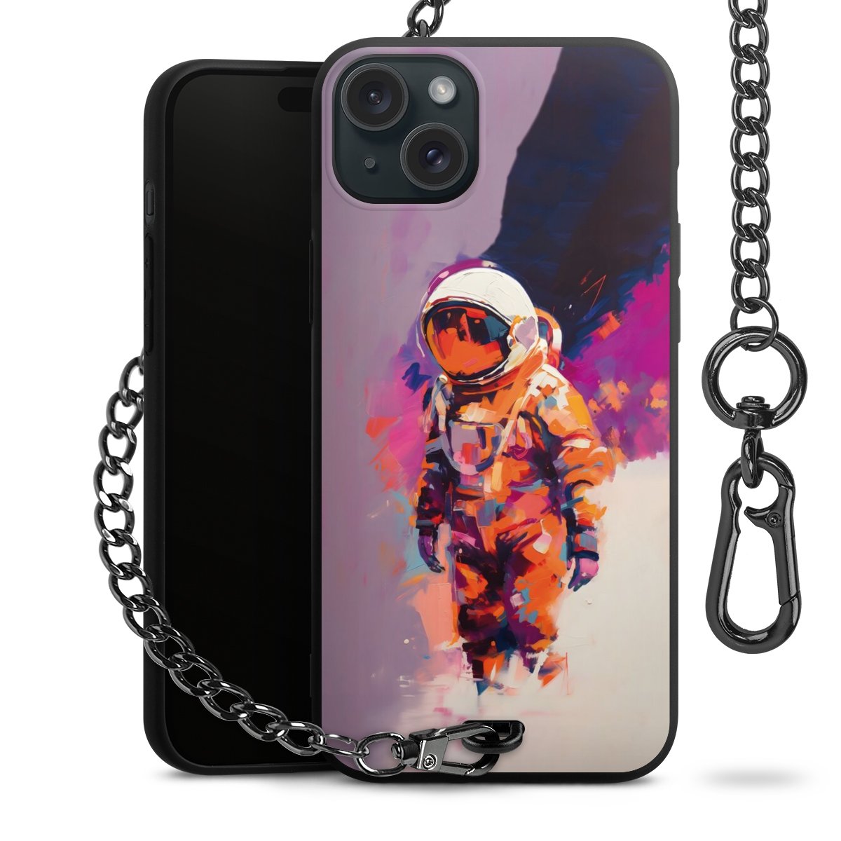 • Mattschwarze Handyhülle mit Metallkette