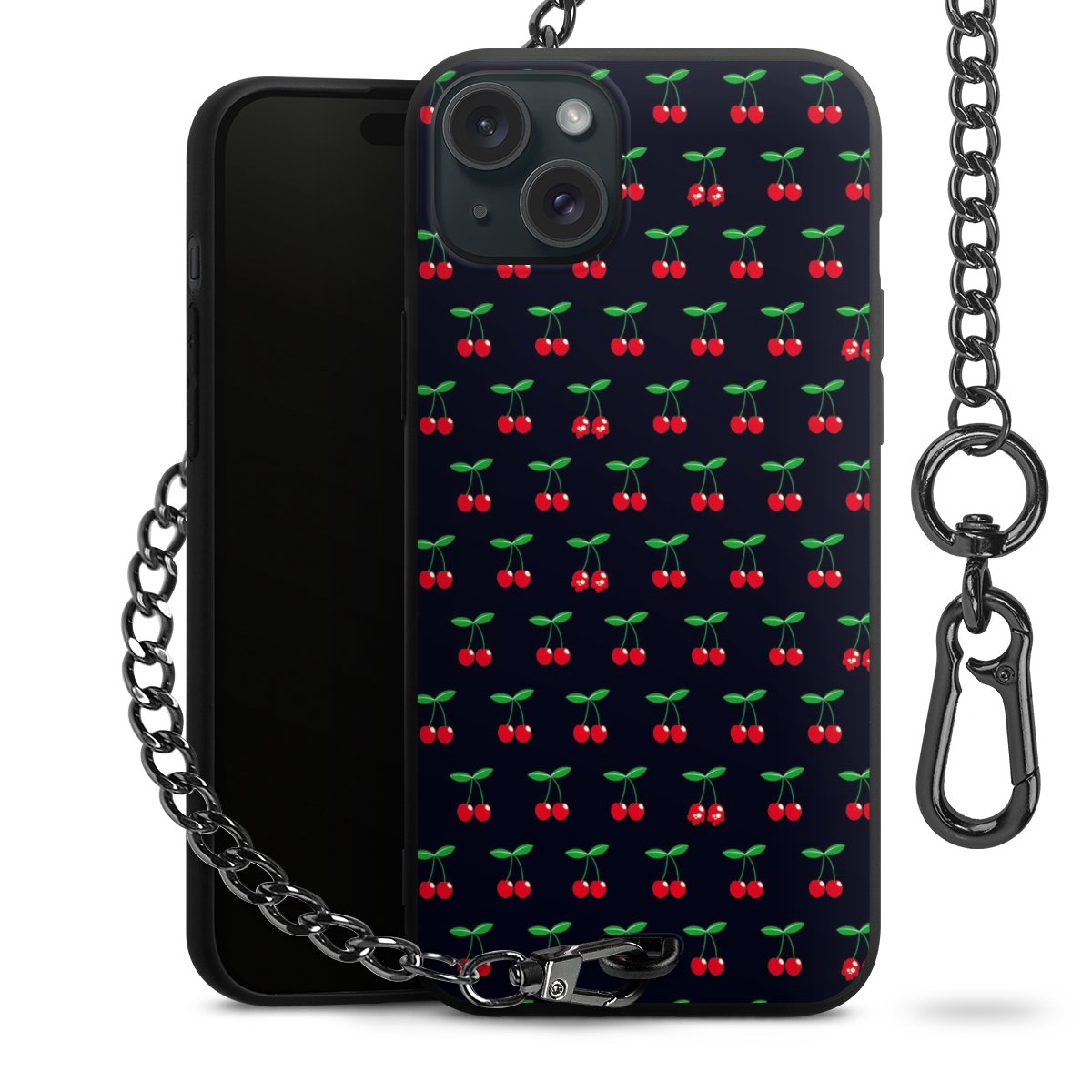 - Mattschwarze Handyhülle mit Metallkette