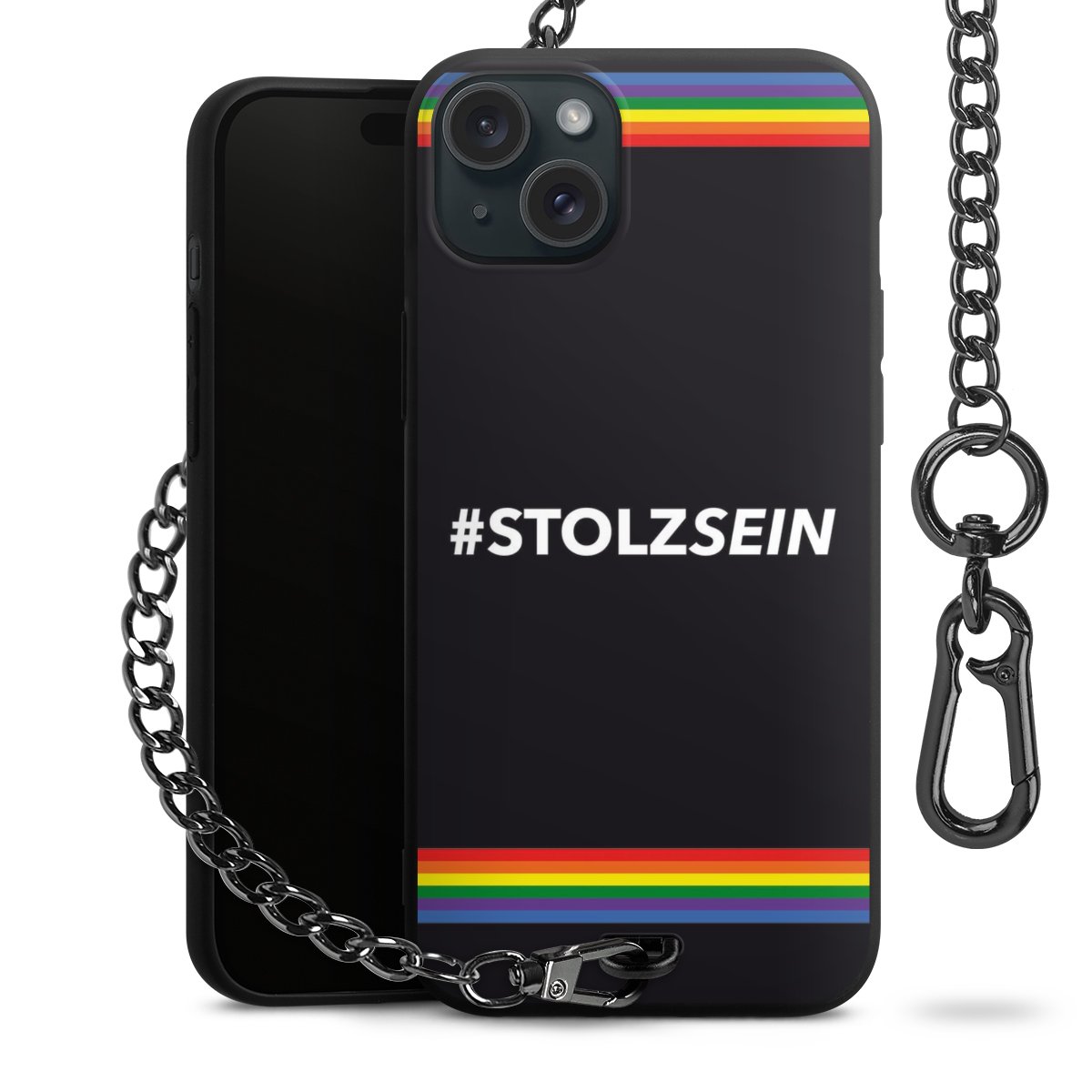 Die mattschwarze Silikon-Handyhülle besteht aus robustem TPU (thermoplastisches Polyurethan). Sie ist flexibel und schützt Dein Smartphone vor Stößen und Kratzern. Die Kette sowie der Karabinerhaken sind aus Metall in Gunmetal-Optik gefertigt. Für dieses Produkt kommen ausschließlich TÜV-geprüfte Materialien zum Einsatz.