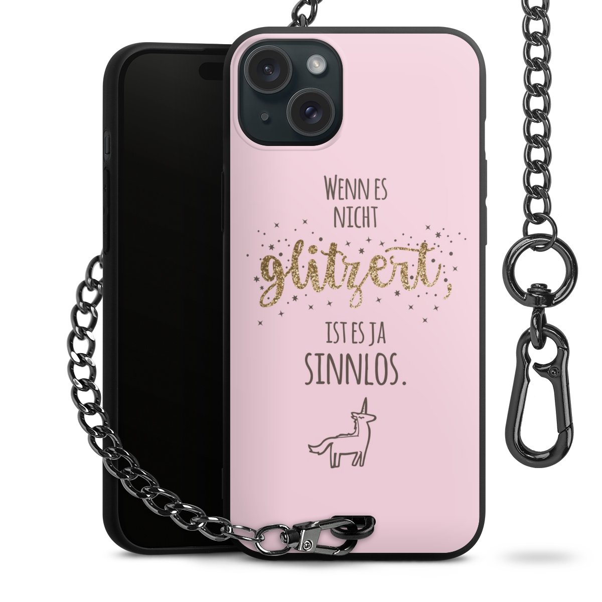 • Mattschwarze Handyhülle mit Metallkette