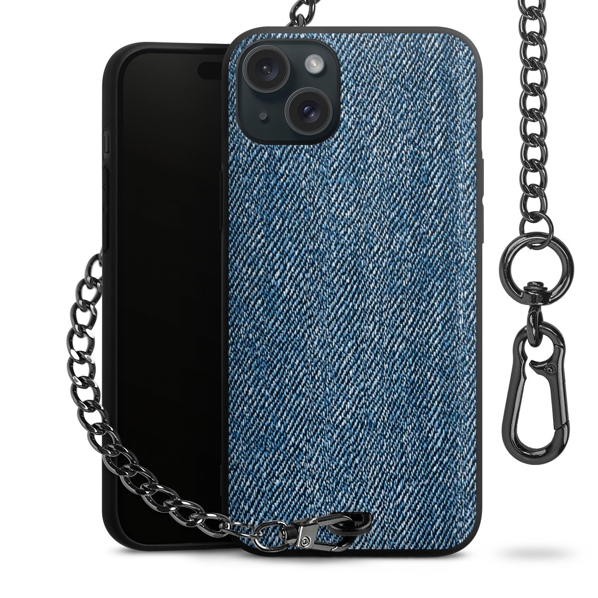 • Mattschwarze Handyhülle mit Metallkette