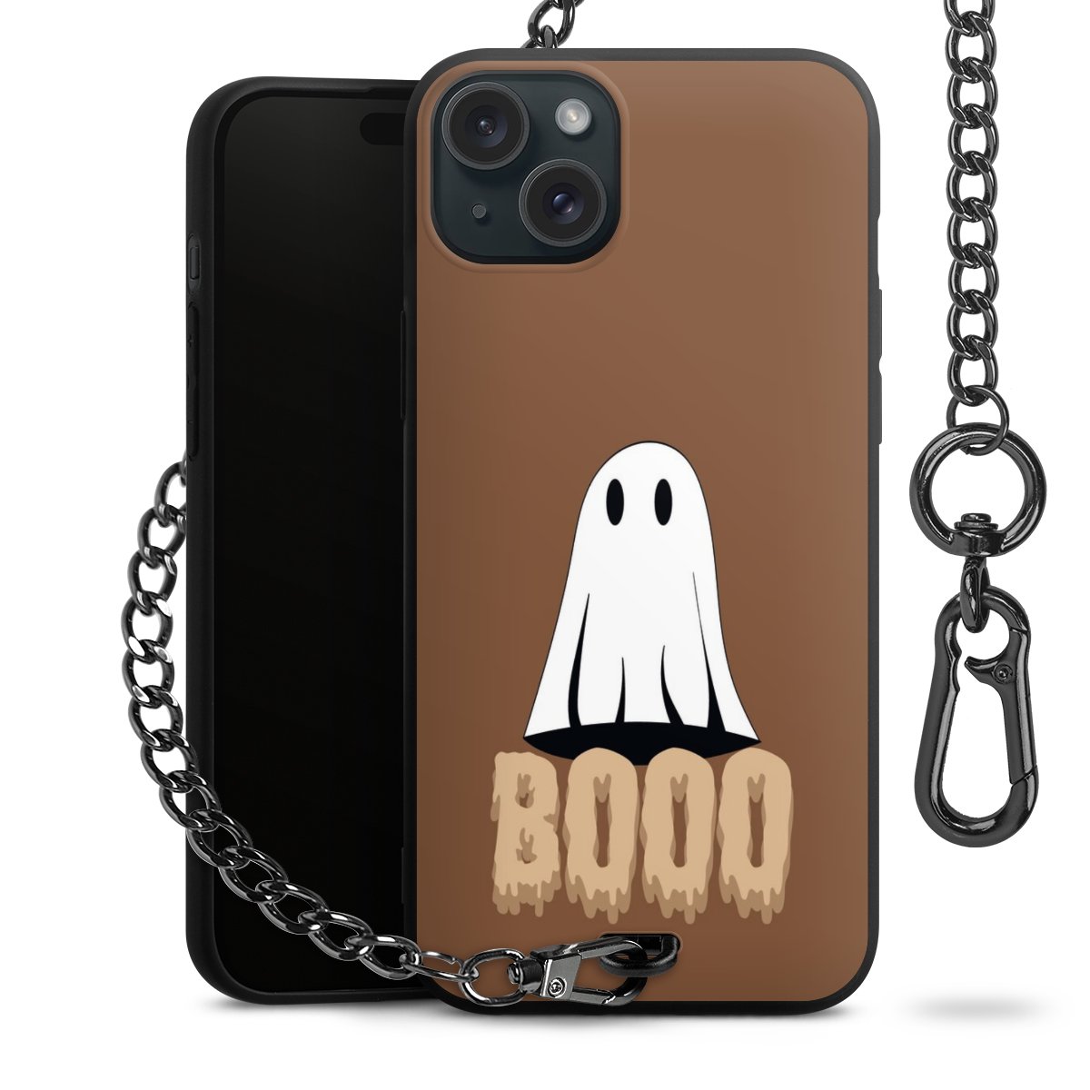 - Mattschwarze Handyhülle mit Metallkette